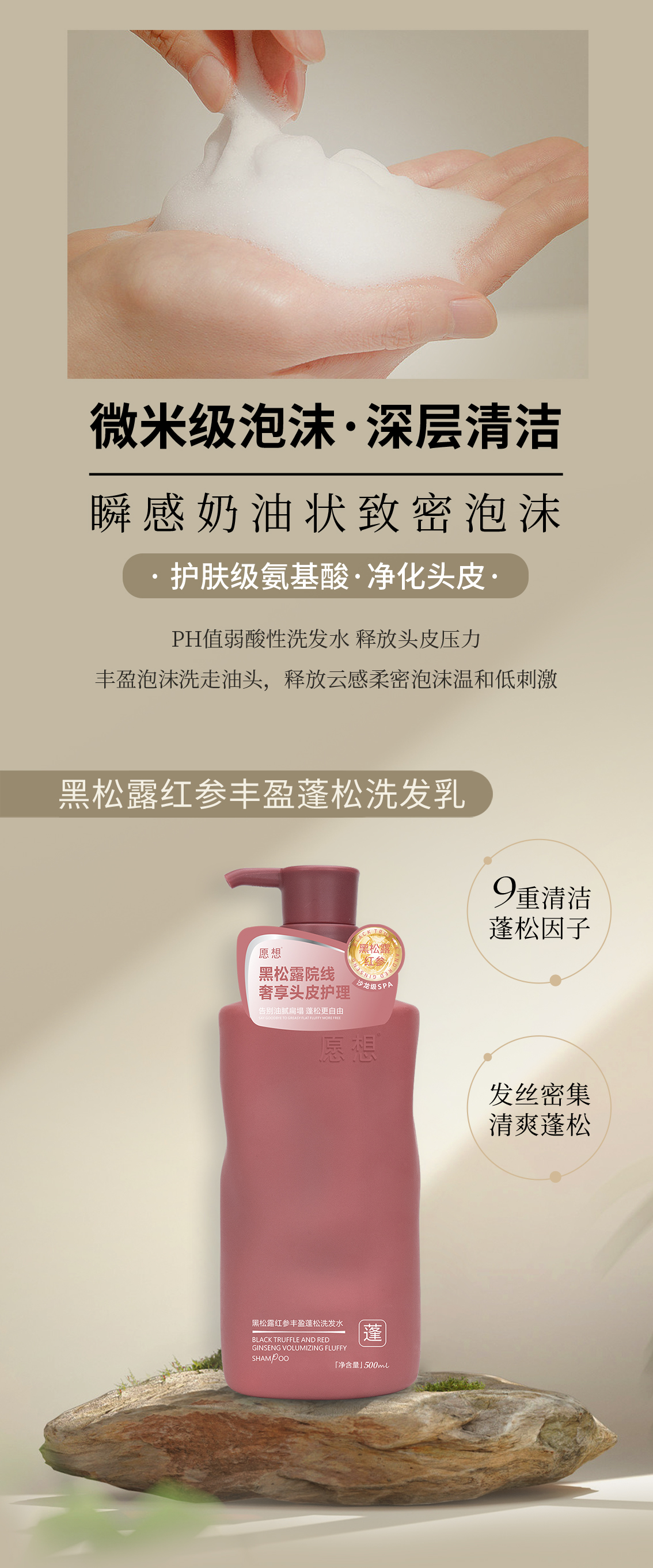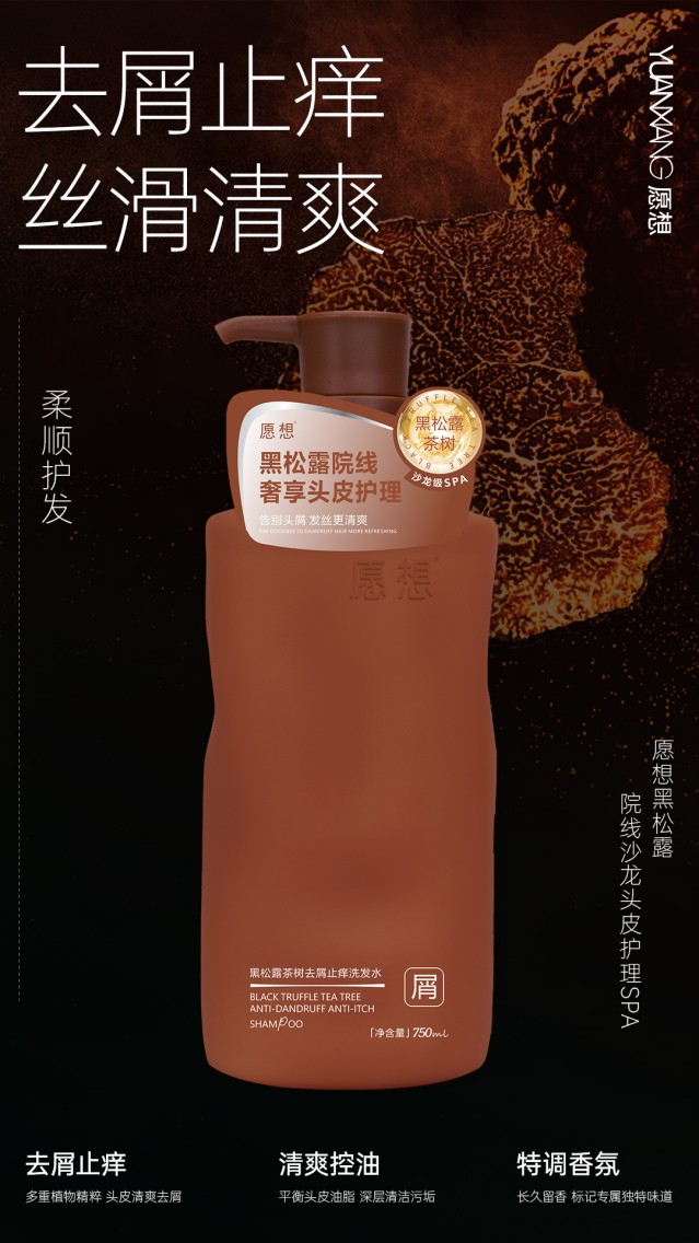 愿想黑松露红参蓬松洗发水黑松露茶树去屑止痒洗发水角蛋白柔顺护发乳750ML